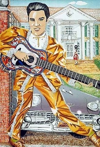 Nous vous proposons une reproduction artisanale sur toile du célèbre tableau 'Elvis' de Red Grooms, provenant du Musée de la Reproduction.