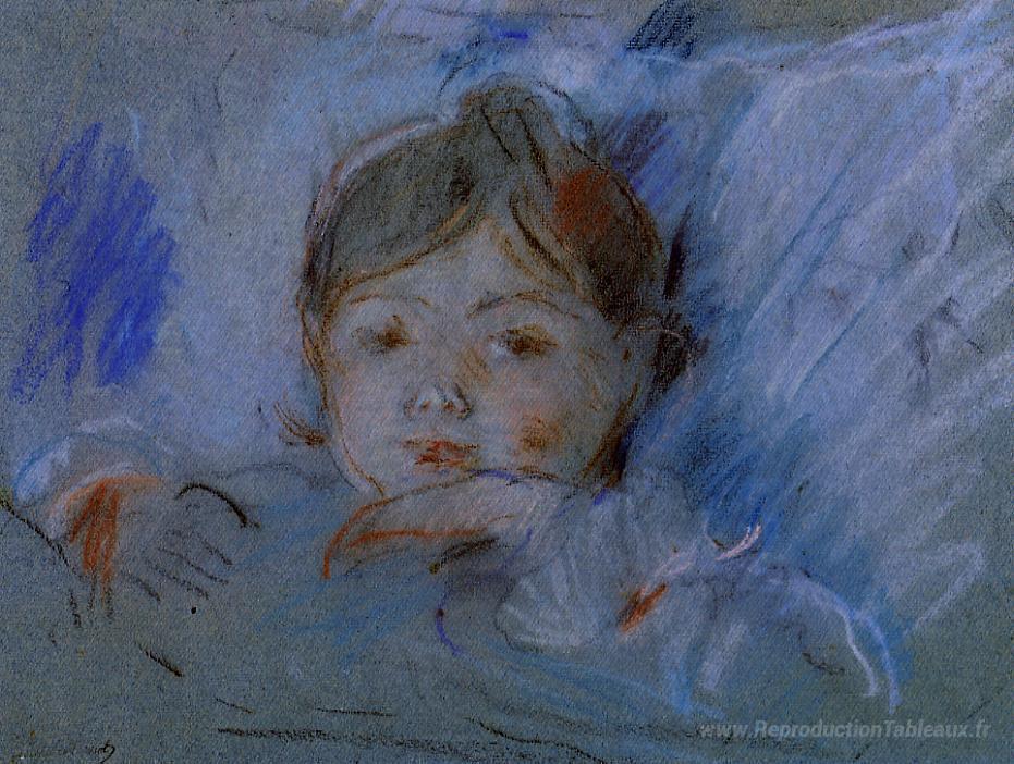Nous vous proposons une reproduction artisanale sur toile du célèbre tableau 'Enfant au lit' de Berthe Morisot, provenant du Musée de la Reproduction.