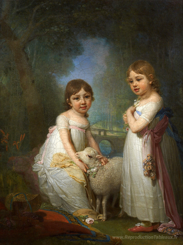 Nous vous proposons une reproduction artisanale sur toile du célèbre tableau 'Enfants avec un agneau' de Vladimir Borovikovsky, provenant du Musée de la Reproduction.