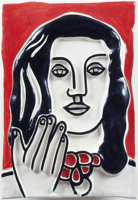 Nous vous proposons une reproduction artisanale sur toile du célèbre tableau 'Face à la main sur un fond rouge' de Fernand Leger, provenant du Musée de la Reproduction.