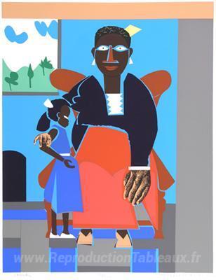 Nous vous proposons une reproduction artisanale sur toile du célèbre tableau 'Famille (mère et enfant)' de Romare Bearden, provenant du Musée de la Reproduction.