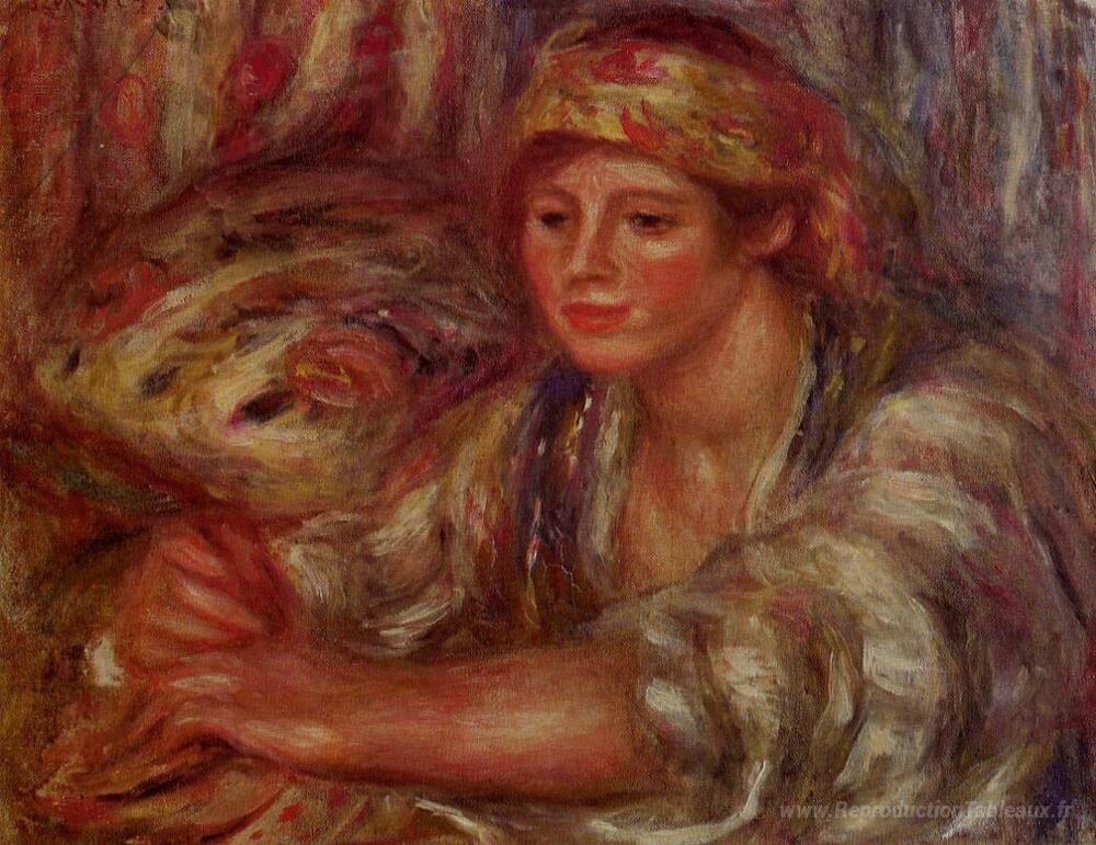 Nous vous proposons une reproduction artisanale sur toile du célèbre tableau 'Femme à jouer aux cartes' de Pierre-Auguste Renoir, provenant du Musée de la Reproduction.