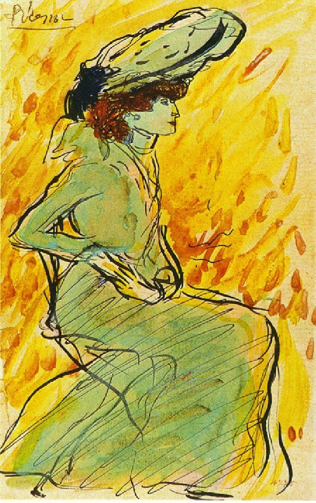 Nous vous proposons une reproduction artisanale sur toile du célèbre tableau 'Femme assise en vert' de Pablo Picasso, provenant du Musée de la Reproduction.