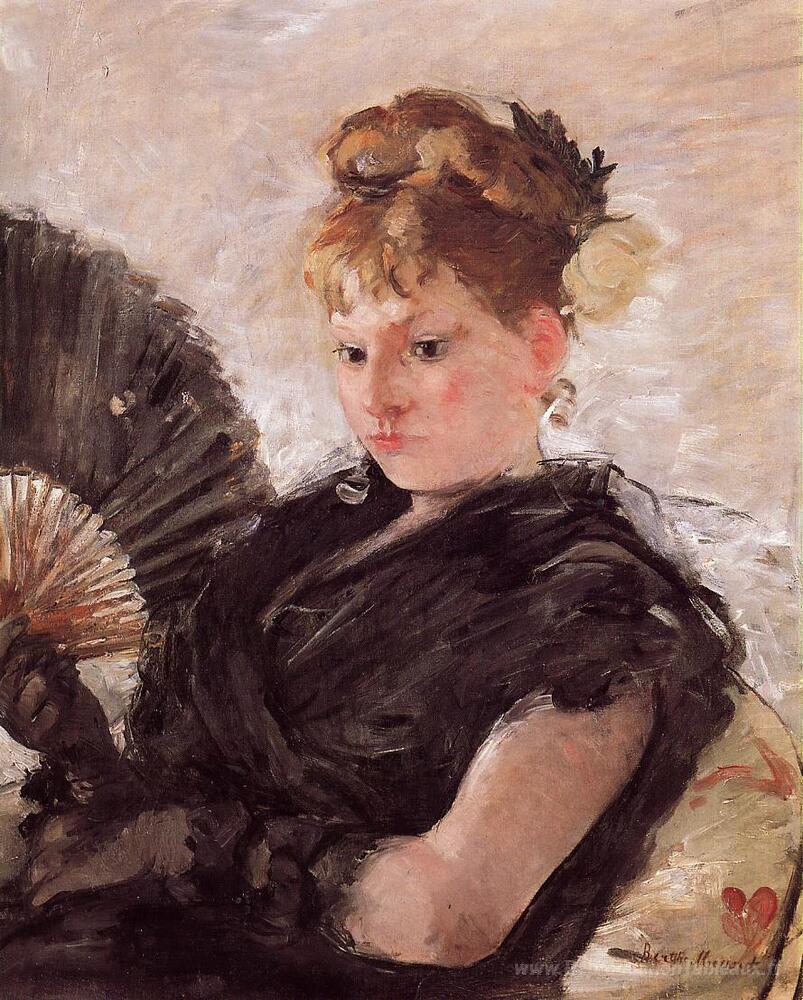 Nous vous proposons une reproduction artisanale sur toile du célèbre tableau 'Femme avec un fan (aka chef d'une fille)' de Berthe Morisot, provenant du Musée de la Reproduction.