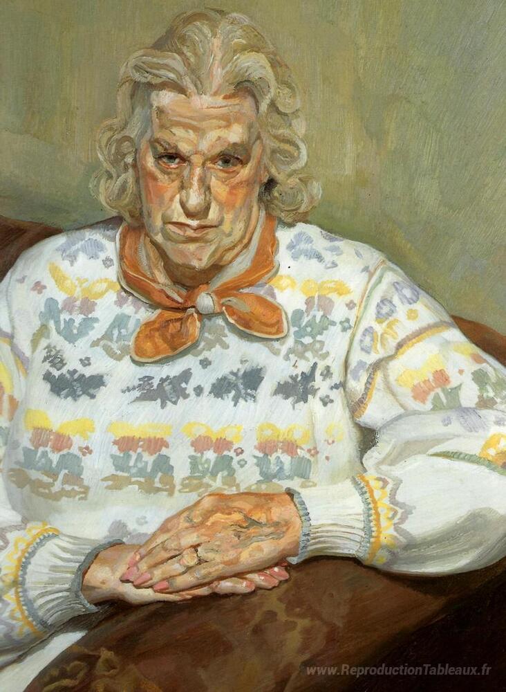 Nous vous proposons une reproduction artisanale sur toile du célèbre tableau 'Femme dans un maillot de papillon' de Lucian Freud, provenant du Musée de la Reproduction.