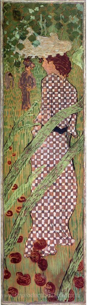 Nous vous proposons une reproduction artisanale sur toile du célèbre tableau 'Femme dans une robe à carreaux' de Pierre Bonnard, provenant du Musée de la Reproduction.