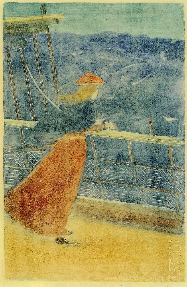 Nous vous proposons une reproduction artisanale sur toile du célèbre tableau 'Femme sur le pont des navires, regardant la mer (également connu' de Maurice Prendergast, provenant du Musée de la Reproduction.