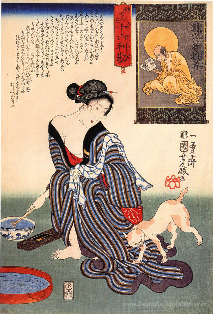 Nous vous proposons une reproduction artisanale sur toile du célèbre tableau 'Femmes' de Utagawa Kuniyoshi, provenant du Musée de la Reproduction.