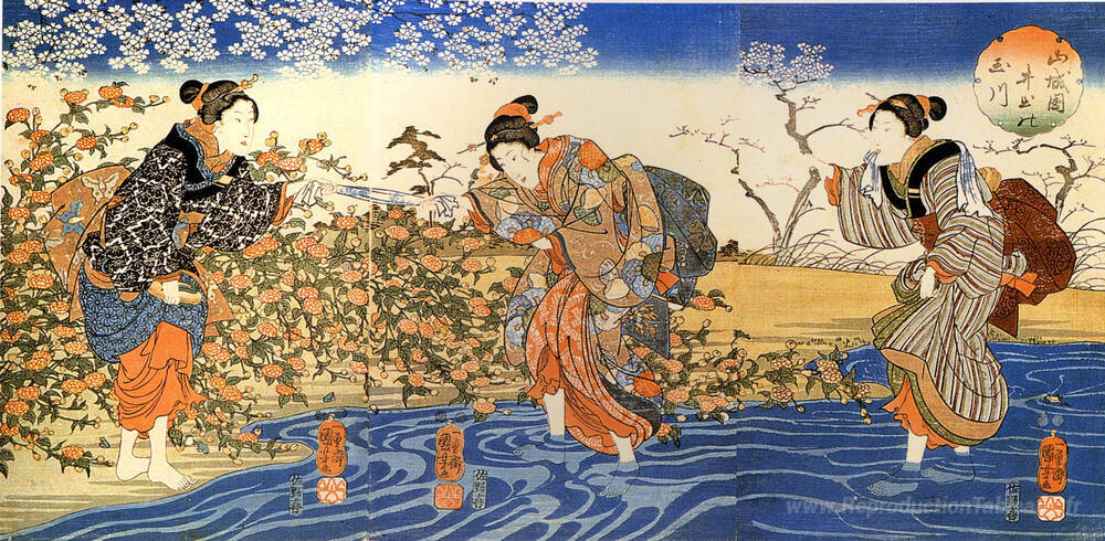 Nous vous proposons une reproduction artisanale sur toile du célèbre tableau 'Femmes' de Utagawa Kuniyoshi, provenant du Musée de la Reproduction.