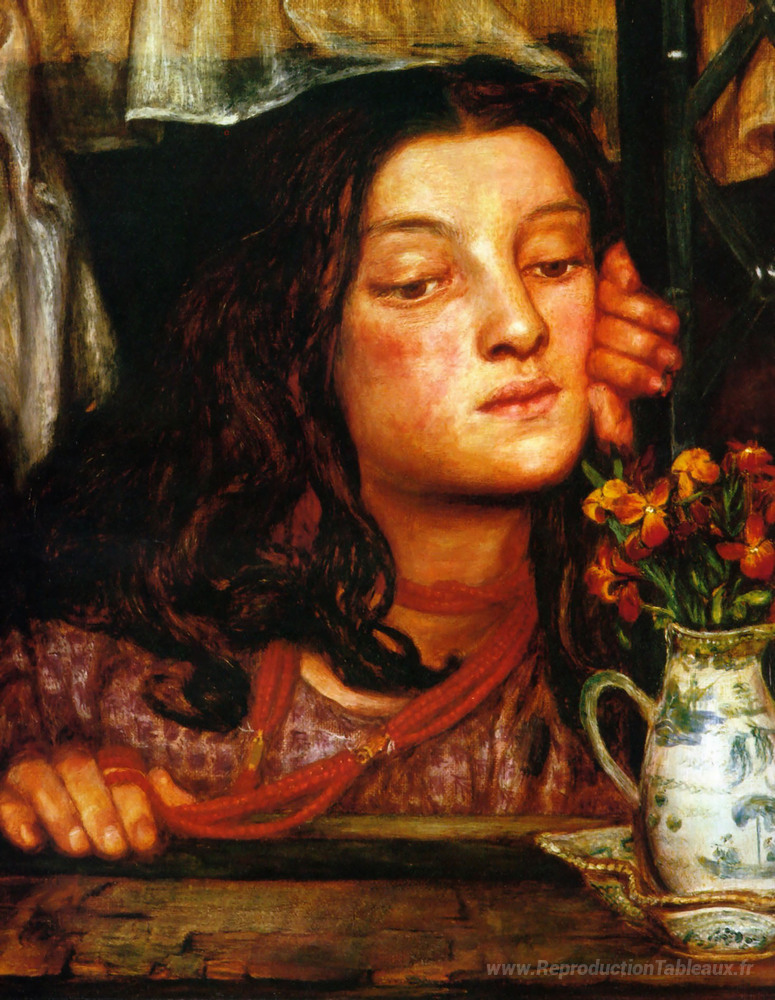 Nous vous proposons une reproduction artisanale sur toile du célèbre tableau 'Fille à un réseau' de Dante Gabriel Rossetti, provenant du Musée de la Reproduction.