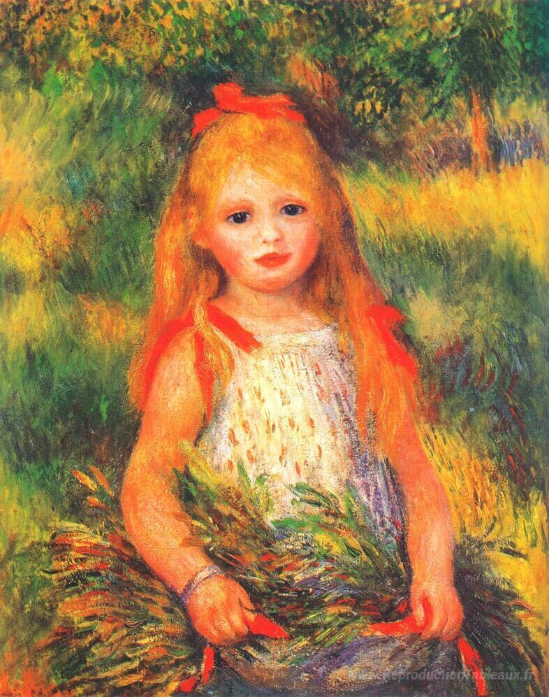 Nous vous proposons une reproduction artisanale sur toile du célèbre tableau 'Fille aux fleurs' de Pierre-Auguste Renoir, provenant du Musée de la Reproduction.