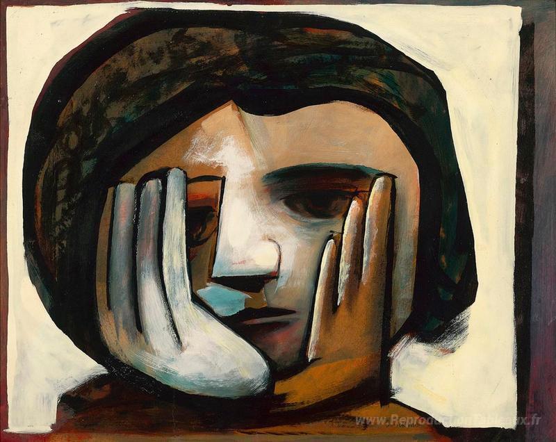 Nous vous proposons une reproduction artisanale sur toile du célèbre tableau 'Fille aux mains' de Charles Blackman, provenant du Musée de la Reproduction.
