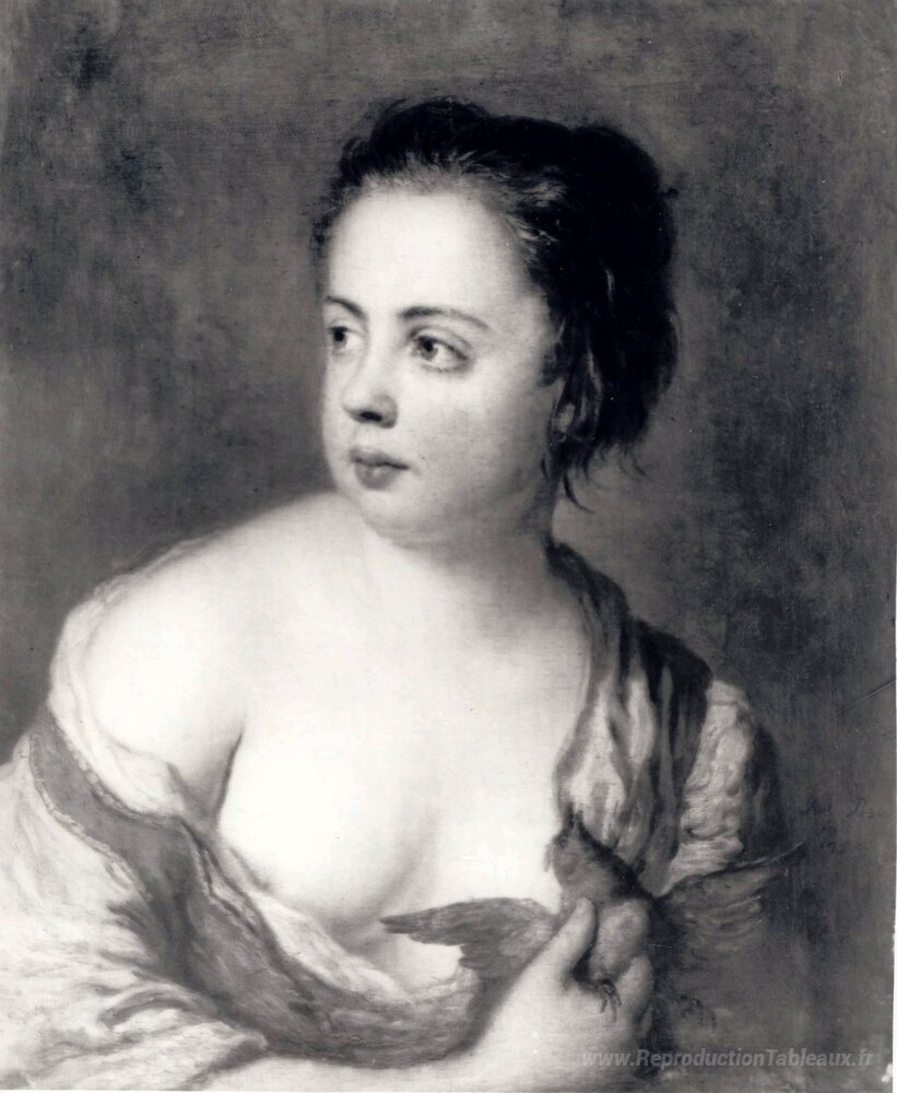 Nous vous proposons une reproduction artisanale sur toile du célèbre tableau 'Fille avec une colombe' de Antoine Pesne, provenant du Musée de la Reproduction.
