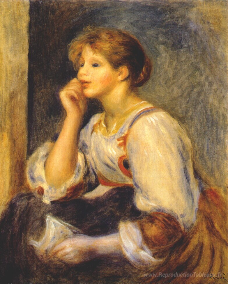 Nous vous proposons une reproduction artisanale sur toile du célèbre tableau 'Fille avec une lettre' de Pierre-Auguste Renoir, provenant du Musée de la Reproduction.