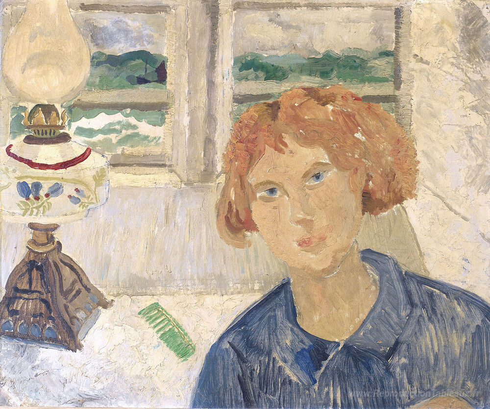 Nous vous proposons une reproduction artisanale sur toile du célèbre tableau 'Fille et lampe dans une fenêtre de Cornouailles' de Christopher Wood, provenant du Musée de la Reproduction.