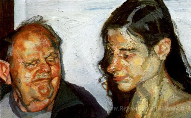 Nous vous proposons une reproduction artisanale sur toile du célèbre tableau 'Fille et père' de Lucian Freud, provenant du Musée de la Reproduction.