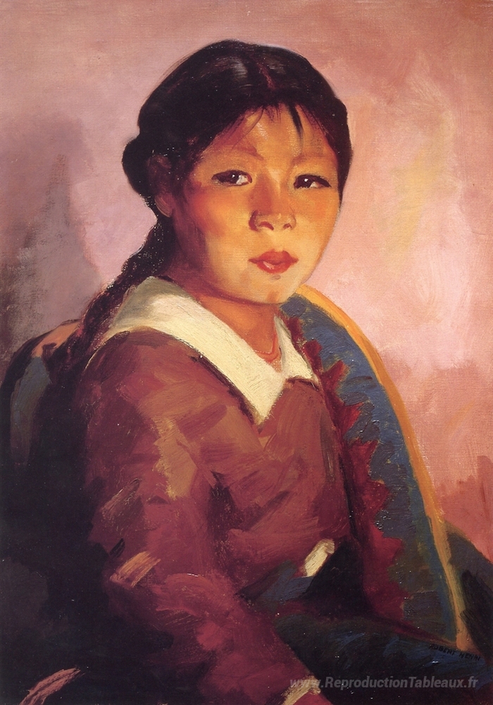 Nous vous proposons une reproduction artisanale sur toile du célèbre tableau 'Florencia' de Robert Henri, provenant du Musée de la Reproduction.