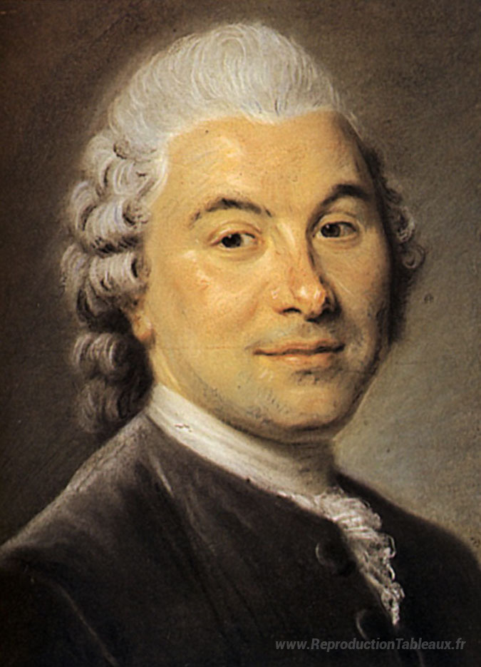 Nous vous proposons une reproduction artisanale sur toile du célèbre tableau 'François Louis Veron Forbonnais de Duverger, économiste' de Maurice Quentin de La Tour, provenant du Musée de la Reproduction.