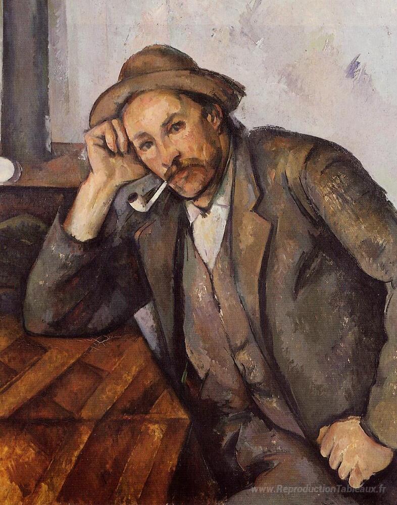Nous vous proposons une reproduction artisanale sur toile du célèbre tableau 'Fumeur' de Paul Cezanne, provenant du Musée de la Reproduction.