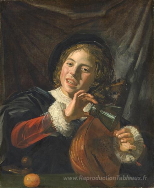 Nous vous proposons une reproduction artisanale sur toile du célèbre tableau 'Garçon avec un luth' de Frans Hals, provenant du Musée de la Reproduction.