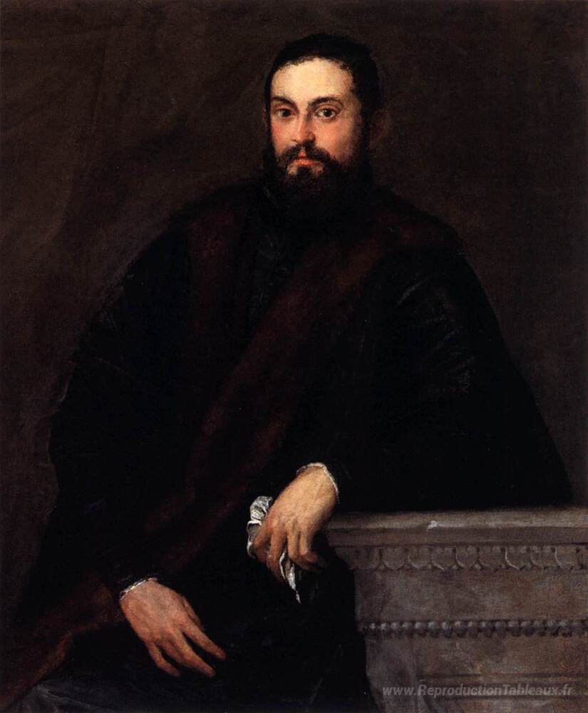 Nous vous proposons une reproduction artisanale sur toile du célèbre tableau 'Gentleman en noir' de Paolo Veronese, provenant du Musée de la Reproduction.