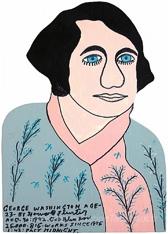 Nous vous proposons une reproduction artisanale sur toile du célèbre tableau 'George Washington à 23 ans' de Howard Finster, provenant du Musée de la Reproduction.