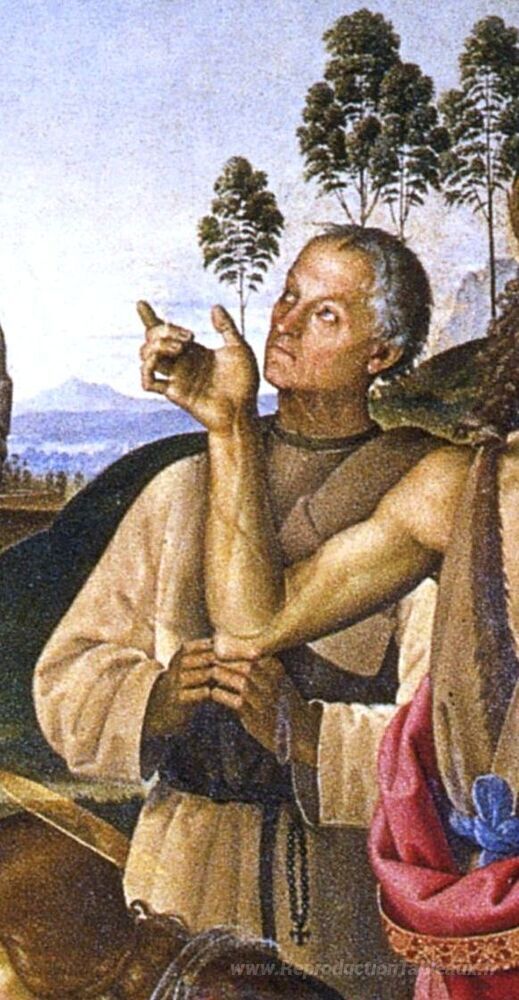 Nous vous proposons une reproduction artisanale sur toile du célèbre tableau 'Giovanni Colombini' de Pietro Perugino, provenant du Musée de la Reproduction.