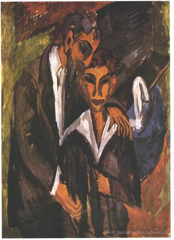Nous vous proposons une reproduction artisanale sur toile du célèbre tableau 'Graef et ami' de Ernst Ludwig Kirchner, provenant du Musée de la Reproduction.