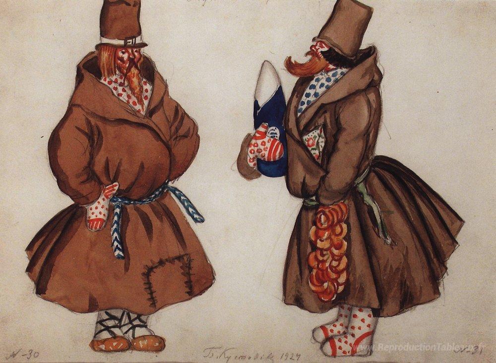 Nous vous proposons une reproduction artisanale sur toile du célèbre tableau 'Guys de Tula' de Boris Kustodiev, provenant du Musée de la Reproduction.