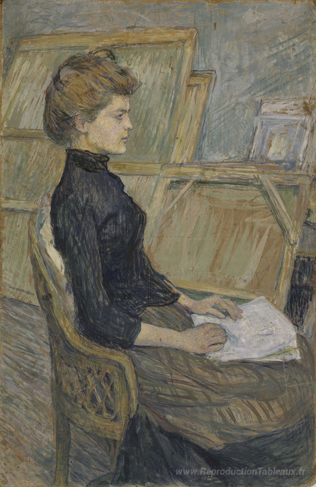 Nous vous proposons une reproduction artisanale sur toile du célèbre tableau 'Helene varie' de Henri de Toulouse-Lautrec, provenant du Musée de la Reproduction.
