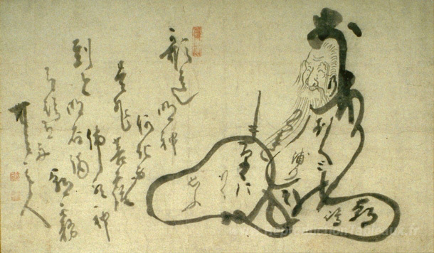 Nous vous proposons une reproduction artisanale sur toile du célèbre tableau 'Hitomaro' de Hakuin Ekaku, provenant du Musée de la Reproduction.