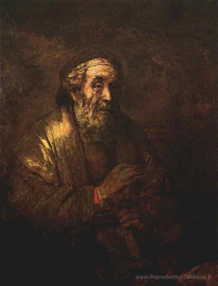 Nous vous proposons une reproduction artisanale sur toile du célèbre tableau 'Homère' de Rembrandt, provenant du Musée de la Reproduction.