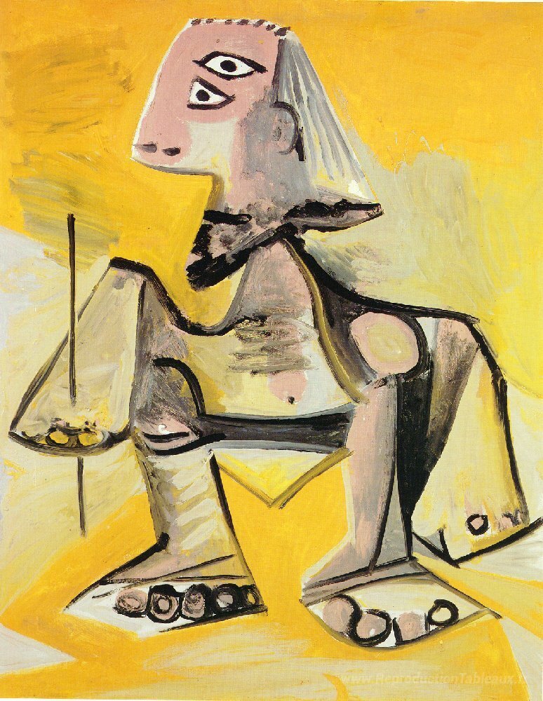 Nous vous proposons une reproduction artisanale sur toile du célèbre tableau 'Homme accroupi' de Pablo Picasso, provenant du Musée de la Reproduction.
