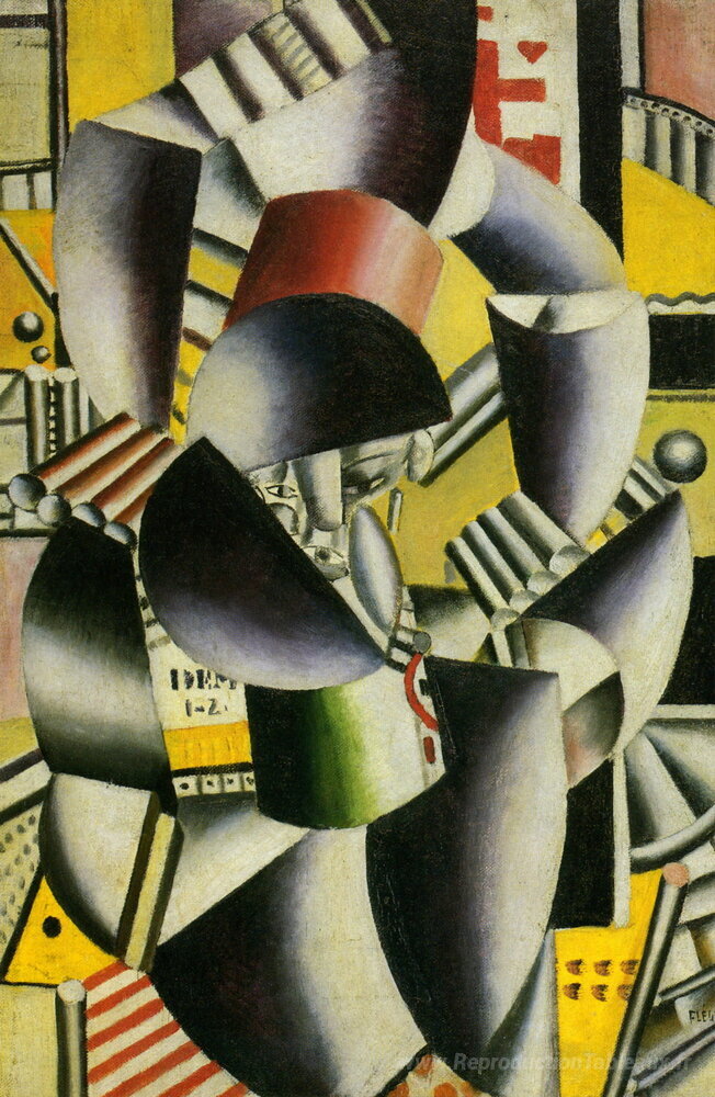 Nous vous proposons une reproduction artisanale sur toile du célèbre tableau 'Homme et femme' de Fernand Leger, provenant du Musée de la Reproduction.