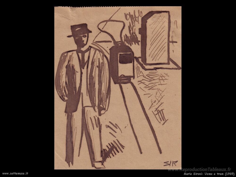 Nous vous proposons une reproduction artisanale sur toile du célèbre tableau 'Homme et tramway' de Mario Sironi, provenant du Musée de la Reproduction.
