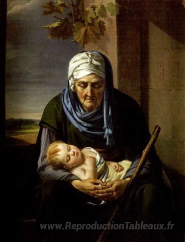 Nous vous proposons une reproduction artisanale sur toile du célèbre tableau 'Il sonsno dell'infanzia e della Vecchiaia' de Marie-Guillemine Benoist, provenant du Musée de la Reproduction.