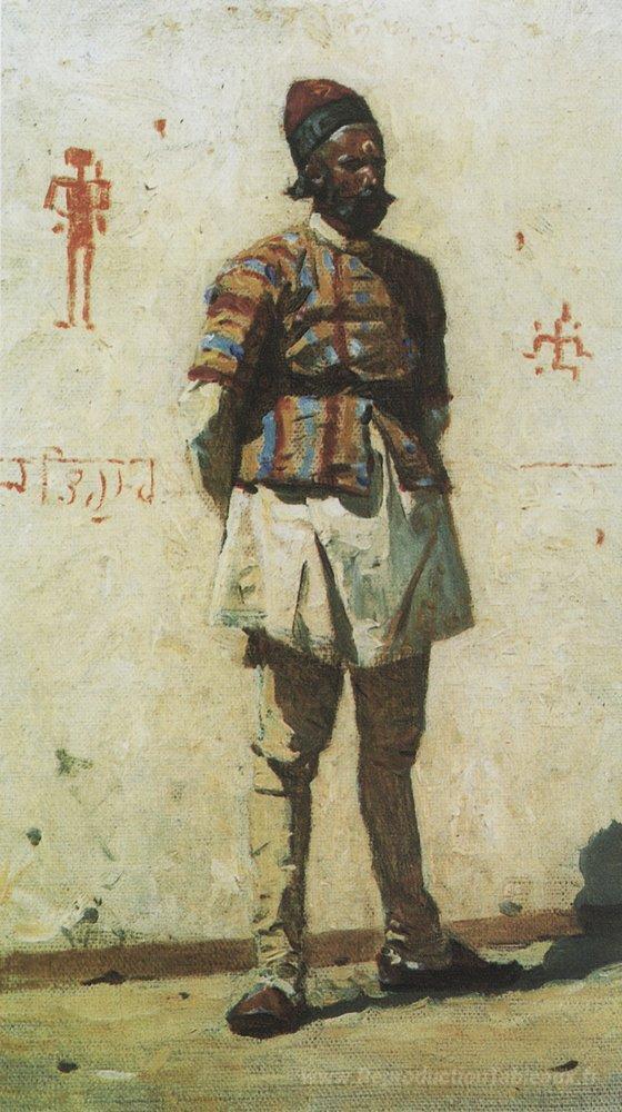 Nous vous proposons une reproduction artisanale sur toile du célèbre tableau 'Indien' de Vasily Vereshchagin, provenant du Musée de la Reproduction.