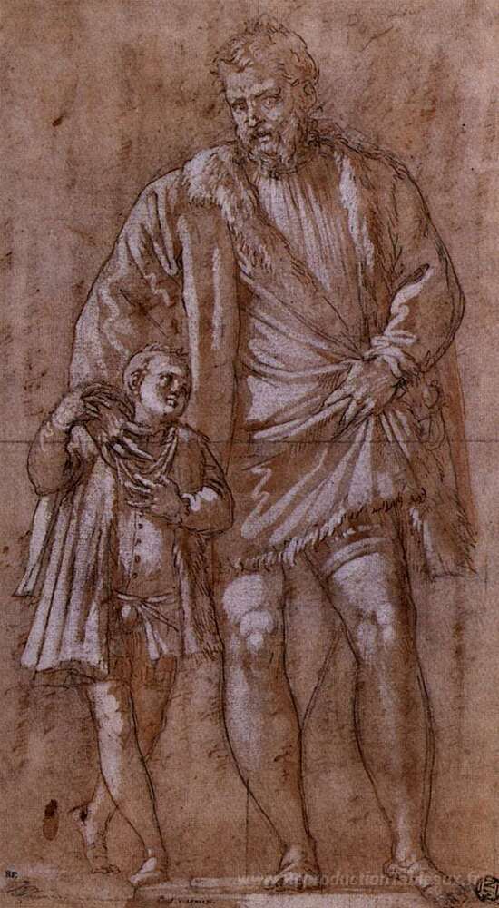 Nous vous proposons une reproduction artisanale sur toile du célèbre tableau 'Iseppo et Adriano da Porto' de Paolo Veronese, provenant du Musée de la Reproduction.