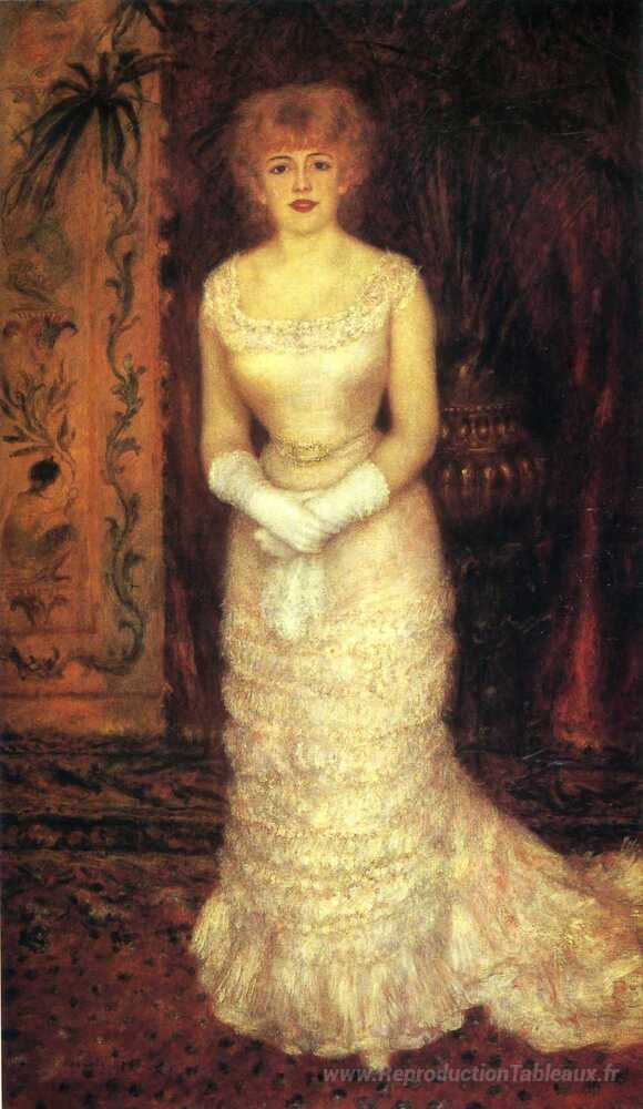 Nous vous proposons une reproduction artisanale sur toile du célèbre tableau 'Jeanne Samary' de Pierre-Auguste Renoir, provenant du Musée de la Reproduction.