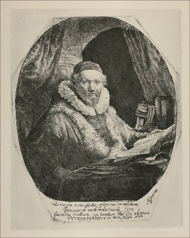 Nous vous proposons une reproduction artisanale sur toile du célèbre tableau 'Johannes Uijtenbodaerd' de Rembrandt, provenant du Musée de la Reproduction.