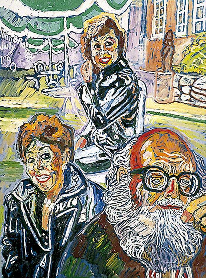 Nous vous proposons une reproduction artisanale sur toile du célèbre tableau 'John avec deux Pattis, Beauport Park, Hastings' de John Bratby, provenant du Musée de la Reproduction.