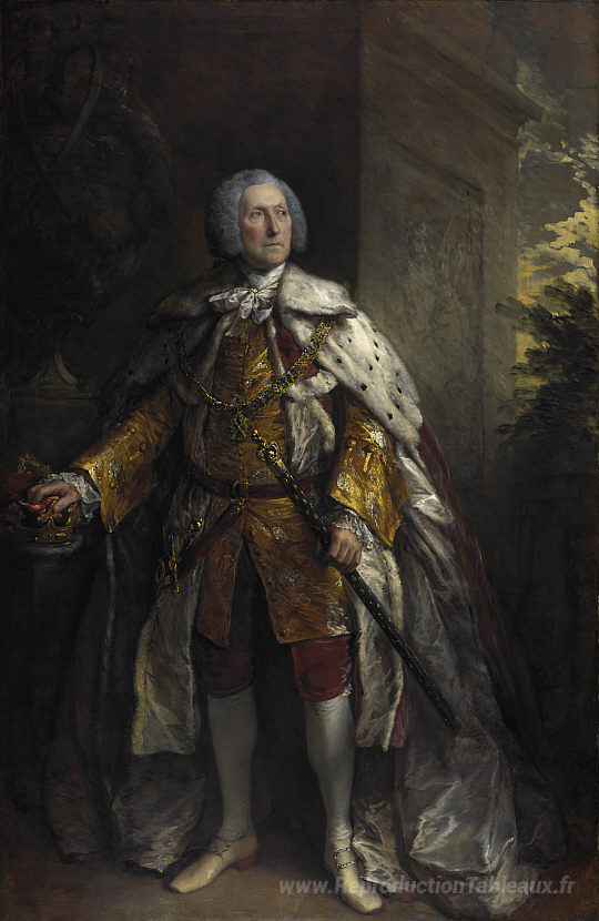 Nous vous proposons une reproduction artisanale sur toile du célèbre tableau 'John Campbell, 4e duc d'Argyll' de Thomas Gainsborough, provenant du Musée de la Reproduction.