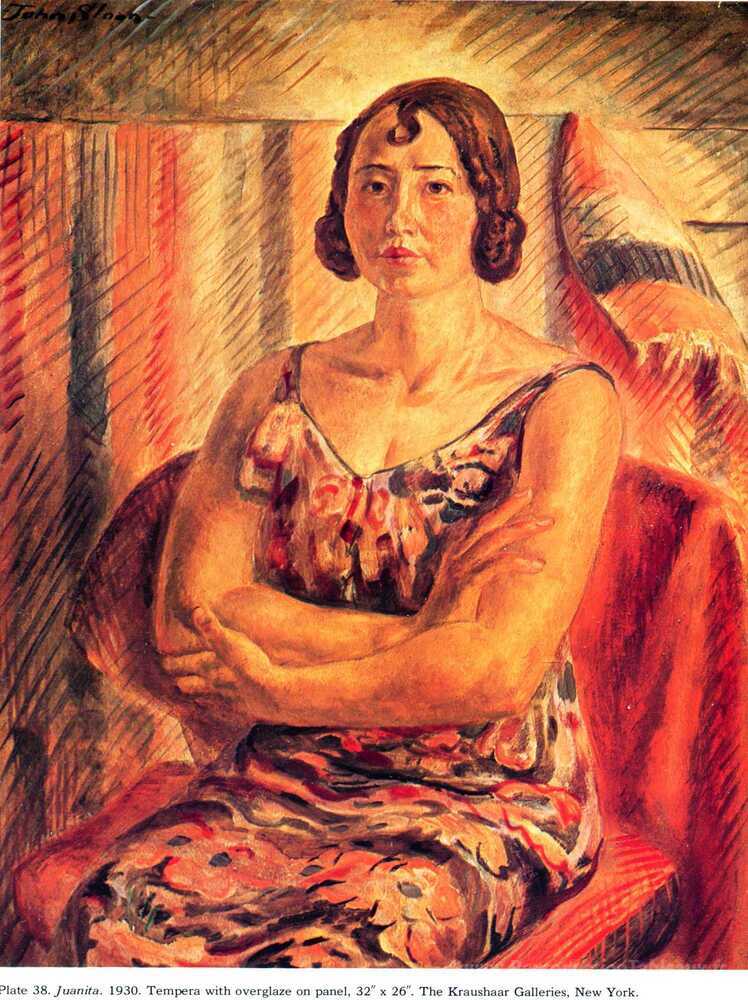 Nous vous proposons une reproduction artisanale sur toile du célèbre tableau 'Juanita' de John French Sloan, provenant du Musée de la Reproduction.