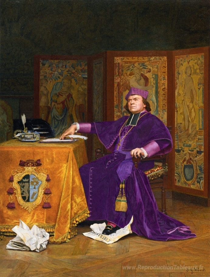 Bienvenue sur notre site e-commerce dédié à la reproduction d'œuvres d'art, où l'élégance rencontre la passion de la création artistique. Découvrez La colère de l’évêque de l'illustre artiste Jehan Georges Vibert, une pièce maîtresse qui illustre parfaitement le talent indéniable de cet auteur du XIXe siècle. Vibert, connu pour son sens aigu des détails et son humour subtil, capture ici une scène dramatique empreinte de richesse narrative et de couleurs vibrantes.