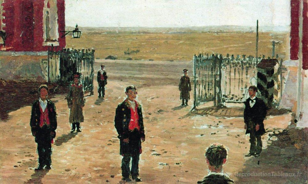 Nous vous proposons une reproduction artisanale sur toile du célèbre tableau 'La cour du palais de Petrovsky' de Ilya Repin, provenant du Musée de la Reproduction.