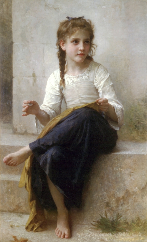 Nous vous proposons une reproduction artisanale sur toile du célèbre tableau 'La couturière' de William-Adolphe Bouguereau, provenant du Musée de la Reproduction.
