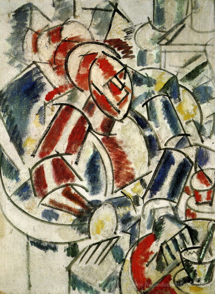 Nous vous proposons une reproduction artisanale sur toile du célèbre tableau 'La femme avec le fauteuil' de Fernand Leger, provenant du Musée de la Reproduction.