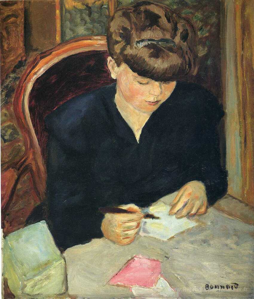 Nous vous proposons une reproduction artisanale sur toile du célèbre tableau 'La lettre' de Pierre Bonnard, provenant du Musée de la Reproduction.