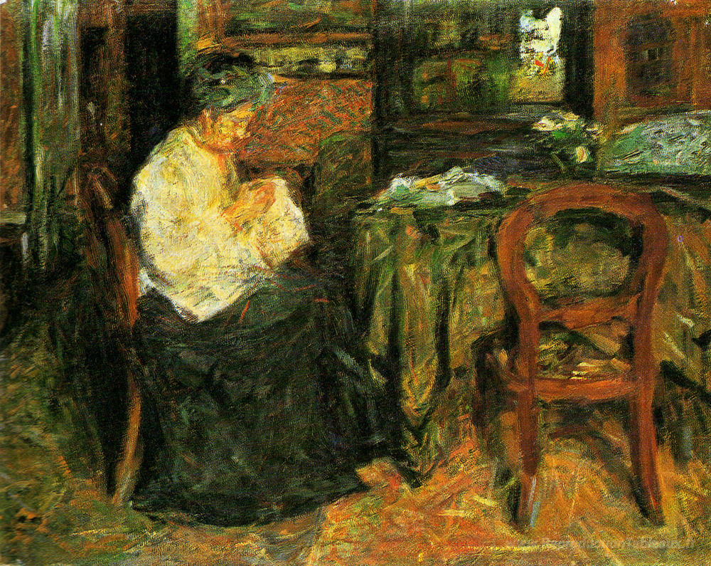 Nous vous proposons une reproduction artisanale sur toile du célèbre tableau 'La mère coud' de Mario Sironi, provenant du Musée de la Reproduction.