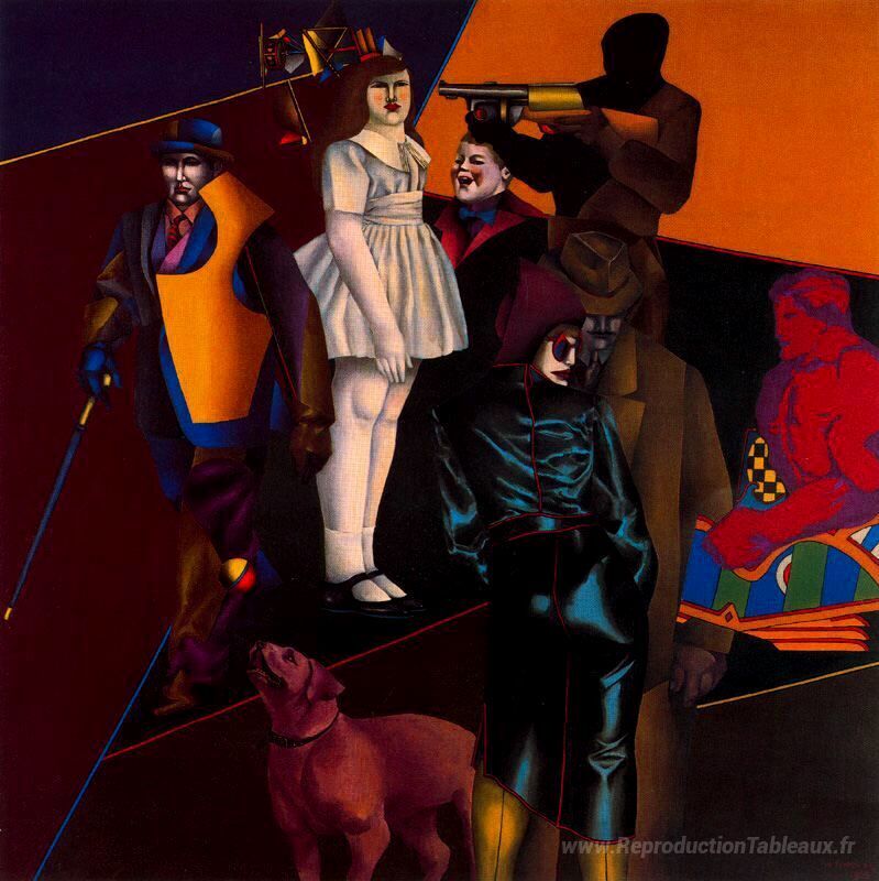 Nous vous proposons une reproduction artisanale sur toile du célèbre tableau 'La rue' de Richard Lindner, provenant du Musée de la Reproduction.